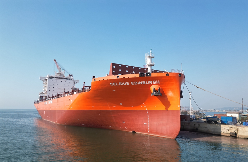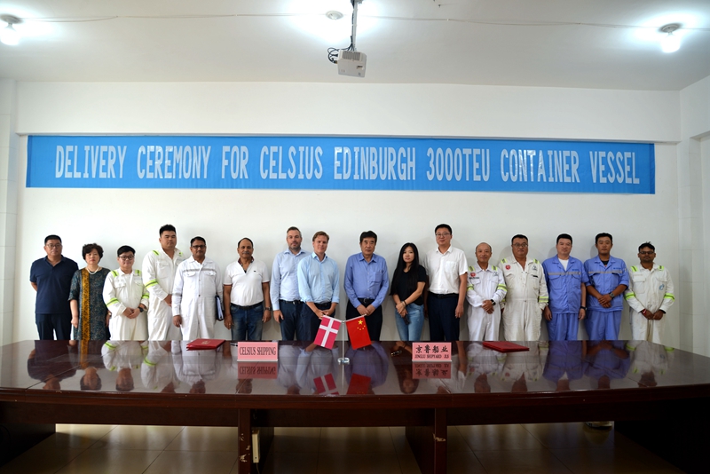 On August 26, 2024, Jinglu Shipyard successfully delivered the "CELSIUS EDINBURGH," the third 3000TEU container ship built for Danish owner Celsius Shipping, with the vessel ready to depart on the same day. This marks the eighteenth successful delivery by the shipyard this year.