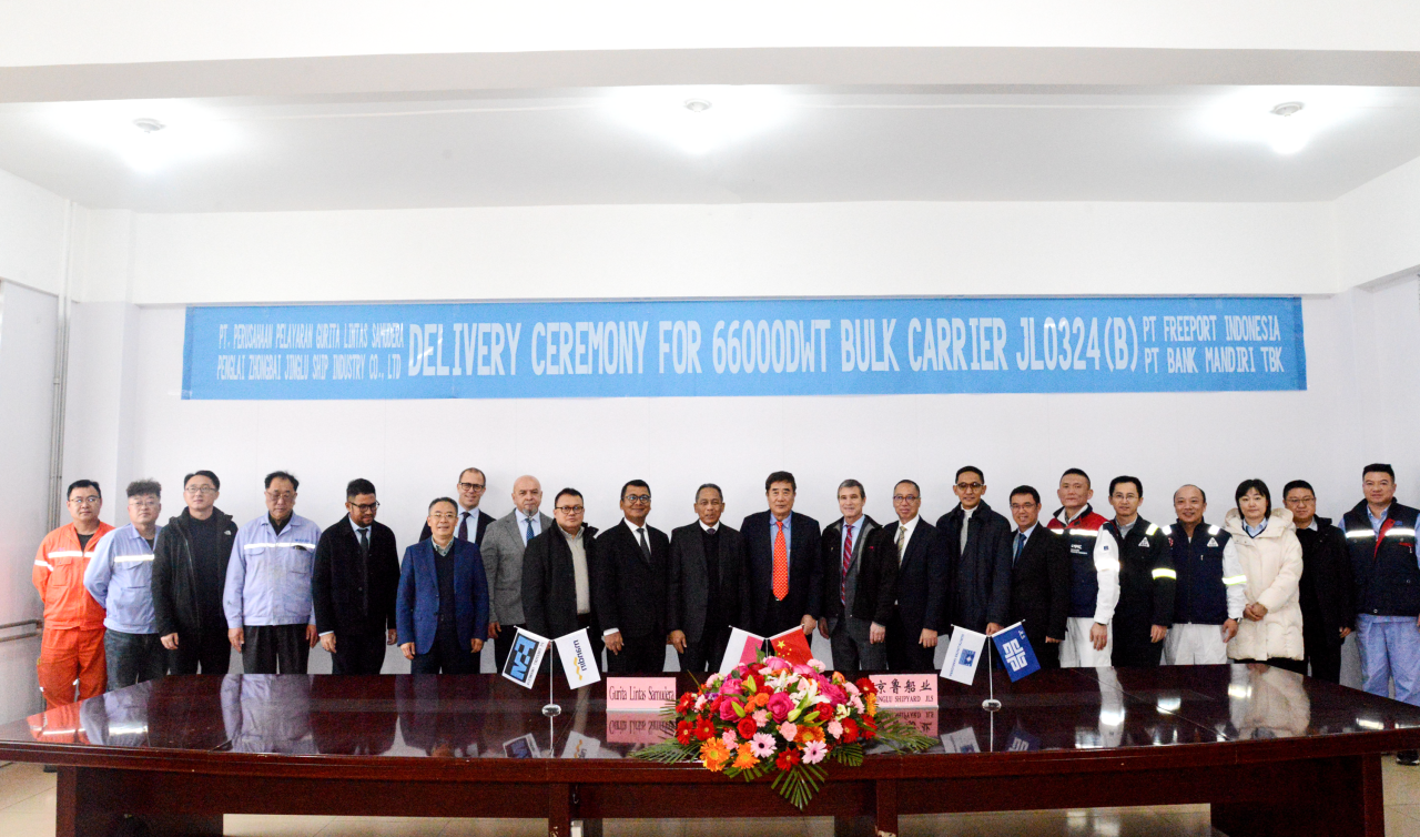 On the 22nd January, 2025, the third 66000DWT Bulk Carrier "SYABIL EMRAN" built by Jinglu Shipyard for Indonesia owner PT. PERUSAHAAN PELAYARAN GURITA LINTAS SAMUDERA was delivered 38 days ahead of Contract delivery date, and had the naming ceremony on the same day. This marks the successful completion of this series of vessels.